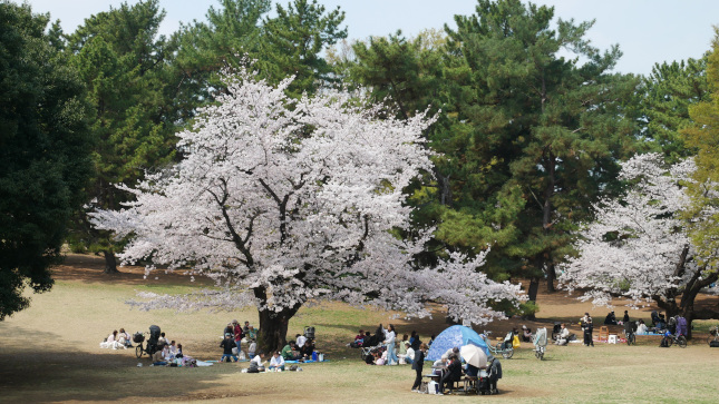 ここは光が丘、練馬区にある公園。月曜日だが、花見はそれなりの盛況です。